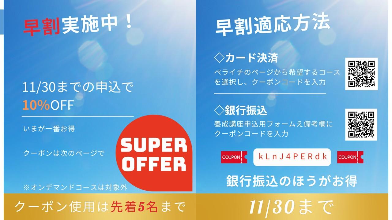 ※10/31までお得に受講できるクーポン発行中(あと3名まで)