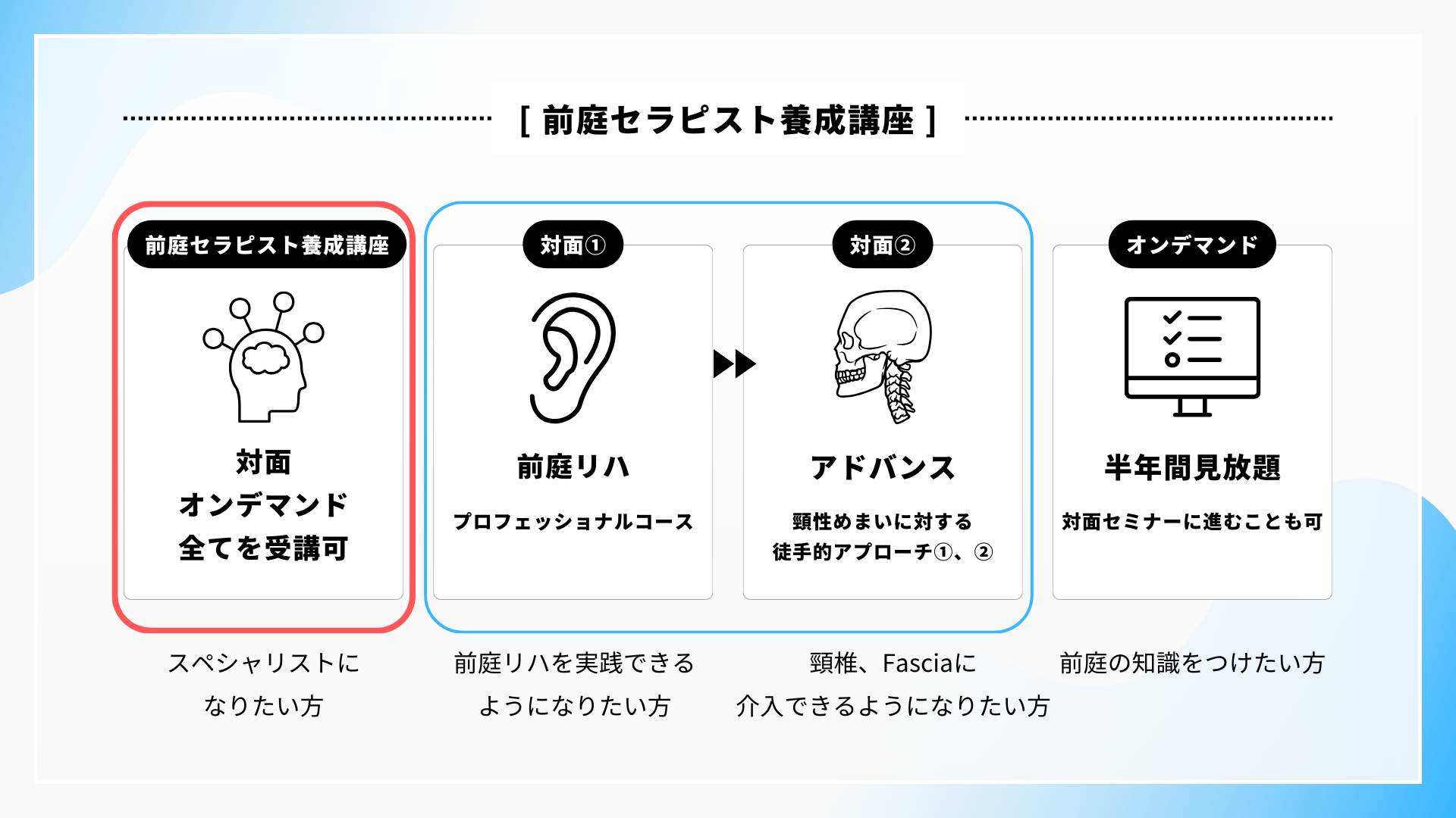 ※【実践!前庭リハプロフェッショナルコース】を追加しました。こちらのコースでは、前庭リハに特化した内容を実施します。